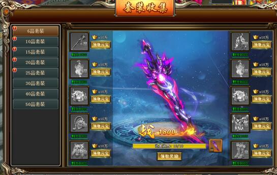 收集不同品质的装备可获得丰厚的元宝和钻石奖励