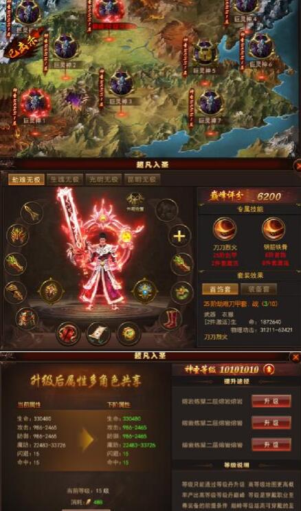 1.【玩法】超凡入圣,玩家闯入神圣的领域,即将面对前所未见的强大敌人,新增11张野外地图,可以掉落神圣系列装备,需要玩家提升神圣等级,才能不断进入神圣领域深处,开服50天后,达到500级开启;