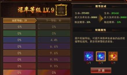 4.【新增】祝福系统,升级后可增加掉落装备品质,开服50天后,达到500级开启;