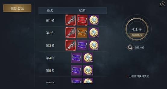 每周奖励与排名息息相关,每周排名将于每周日24点重置排名,请您于合适的时间确认自己的排名,确保自己的排名稳定。