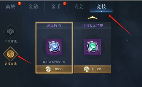 点击“商城”,则进入竞技商城,通过竞技获得的竞技币可以用于兑换商店中的宝贵商品。