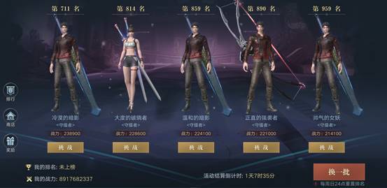 进入跨服竞技面板后,系统会为您选择一批与您排名相近的对手,如果您不满意,可以点击右下角的“换一批”按钮,更换一批对手进行挑战。