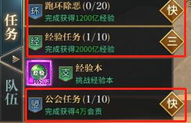 每日任务:完成跑环除恶、经验任务、公会任务,可获得大量经验及奖励。
