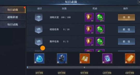每日必做:完成每日必做任务,可获得大量经验与彩蛋经验及其他丰厚奖励。