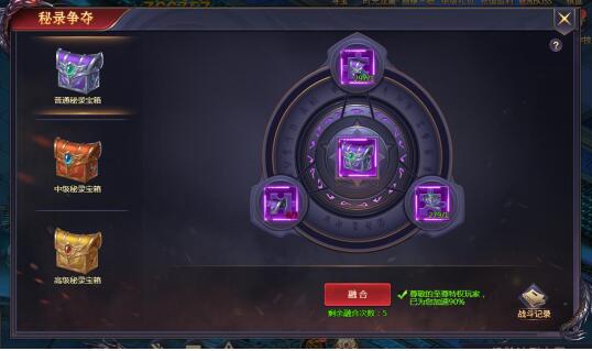 v 【融合】碎片集齐可进行融合,融合消耗一定时间,融合过程中有可能会被其他玩家掠夺导致融合失败,激活至尊特权卡可加速融合时间;