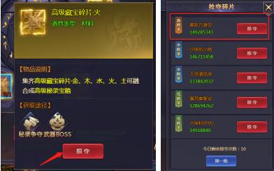 v 【掠夺】位于碎片tips上,点击后可挑选掠夺玩家,角标标记高概率的则代表高概率能掠夺成功,点击掠夺后可进入镜像pk,掠夺成功获得碎片;