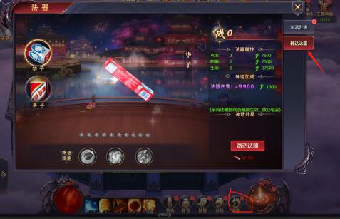 3. 为法器升星可以激活法器技能,满星时可激活特殊技能,对敌人灼烧或使敌人眩晕