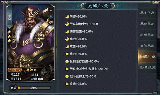 ③此后太阳的提升,可根据实际需要逐步提升,士气与防御属性,恢复加成,减伤等均是非常适合董卓的属性提升。