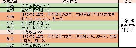 诸葛亮战魂技能与其他武将相差不大,为其他武将来带暴击,攻击等多方面属性加成,自身也拥有一定的输出方面提升。