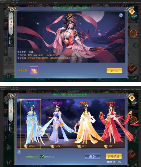 每天可以免费护送3次,仙女根据品质不同给予回报的经验值也不相同,玩家可以通过护送令牌提升仙女的品质。