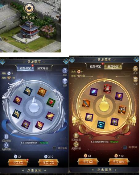 每次寻宝可获得寻龙积分,寻龙积分可在寻龙商店兑换珍稀物品。