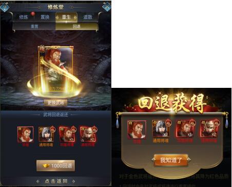 对于金色武将或将魂,可通过回退将其降为红色品质。