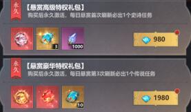 ①特权商店-【悬赏高级特权礼包】(永久)、【悬赏豪华特权礼包】(永久)。