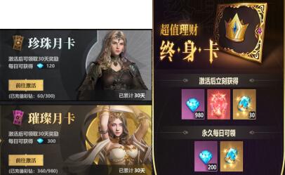 ④福利-【珍珠月卡】、【璀璨月卡】及【终身卡】。