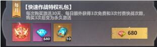 每天多3次免费及3次付费快速作战战次数,同时能出钻石,性价比高。