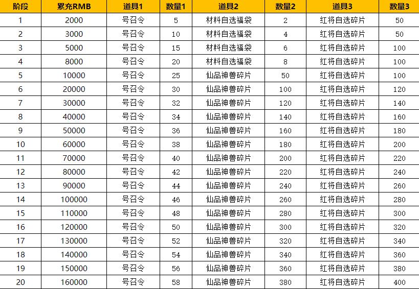 活动规则:从创角时开始计算,总累充返利每个档次奖励终身仅可领取1次