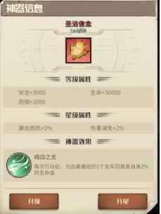 每个神器最高可升至5星,消耗神器碎片可进行升星。每升1星可开启1个加持槽位,每个神器最多开启5个加持槽位