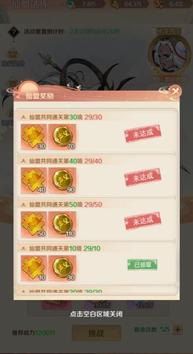 1. 仙盟中所有仙友可共同挑战秘境中的异魔。击败秘境异魔玩家可前往下一境
