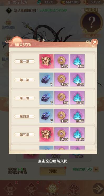 4.仙盟闯关奖励:仙盟闯过指定秘境关卡所有仙盟成员可获得该奖励