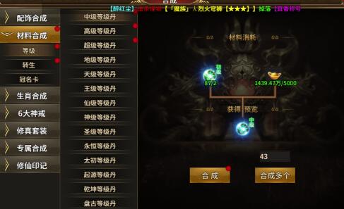 方式一:在本大陆可挂机的地图继续挂机,一般低等级丹和转生丹掉率很高,很快可满足。