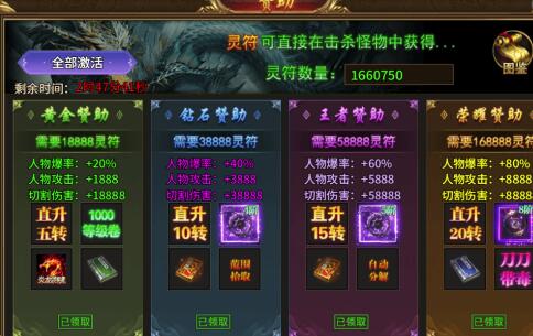 方式三:顶级赞助,灵符购买赞助快速提升转生等级。