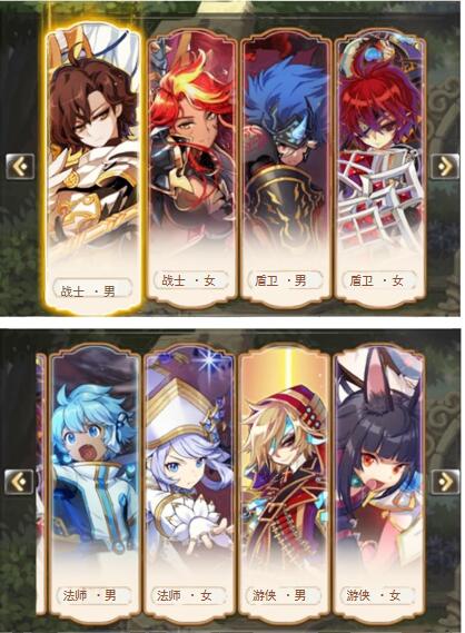 (2)职业分为战士、盾卫、法师、游侠四种系列