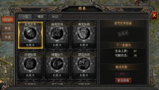 图鉴分为小怪,精英,boss,异兽四个级别