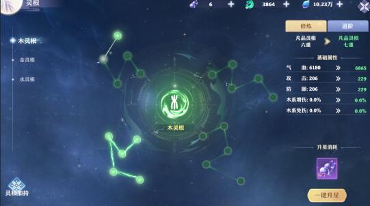 提升灵根增强基础属性,激活多个灵根,额外加持更多灵根属性。