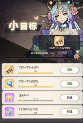游戏中的系统和玩法非常丰富,新手玩家会有无从下手的感觉。但不用担心,游戏中为召唤者们提供了贴心的小目标功能,小目标中会按顺序指引玩家前往各种玩法,跟着小目标的指引,可以更高效的熟悉游戏。如果遇到了不知道该干什么的时候,不妨去看看小目标现在的进度,完成小目标还可以解锁更多的女神!