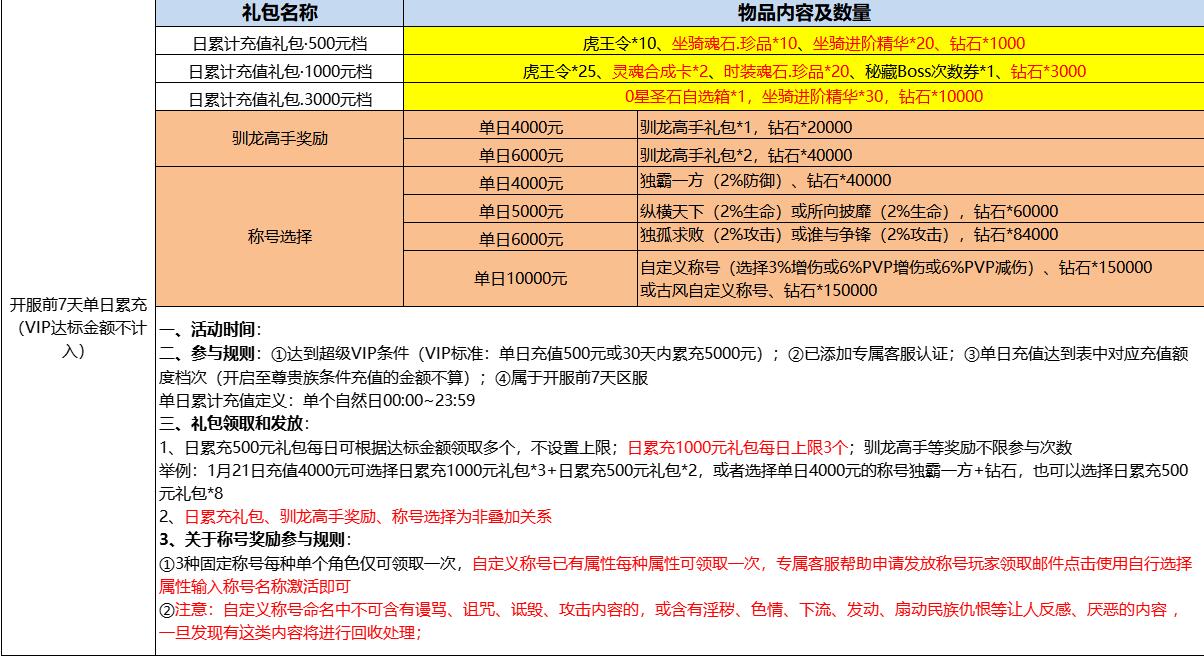 《黎明召唤》开服前7天单日累充线下返利活动