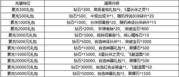 活动规则:从创角时开始计算,总累充返利每个档次奖励终身仅可领取1次
