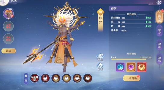 完成主线任务获得武魂化身,战斗时可化身武魂,施展武魂技能,并额外提升属性,进行培养武魂,进一步提升属性,增强战力。