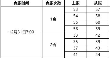 为了活跃游戏气氛,满足玩家需求,让广大玩家可以延续更激烈的战斗,将对以下服务器进行合服操作,合服期间玩家将不能登录游戏,请各位玩家知晓并相互转告,感谢大家的支持!服务器会根据维护操作完成时间提前或者延迟开启,不便之处敬请体谅!