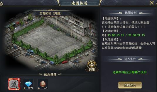 玩法介绍:在规定时间内击杀至尊BOSS,击杀他人可以获取其10%的对BOSS的伤害量