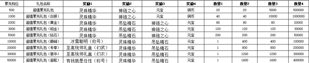活动规则:从创角时开始计算,总累充返利每个档次奖励终身仅可领取1次